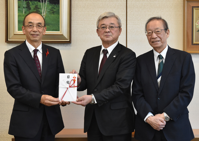 JA全農が、職場内での募金や全農協賛の次世代向け大会での物販売上金などを、「NHK歳末たすけあい」に寄付した。全農の社会貢献活動の取組みの一環として毎年実施しているもの。寄付金額は150万61円。「NHK歳末たすけあい」は共同募金会を通じて、国内の福祉施設や支援を必要とされる人たちのために役立てられている。 15日、東京・渋谷区のNHK放送センターで贈呈式が行われ、全農・折原敬一会長、NHK・稲葉延雄会長、東京都共同募金会・枝見太朗常務理事らが出席、目録が贈呈された。