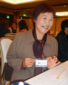 仮設住宅で手芸サークルを立ち上げた佐野ハツノさん =福島市の交流会場で2014年、筆者撮影(以下同)