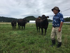 その奮闘に応え、京都へ避難していた三男の豊さんが戻ってきた。現在は豊さんが代表を務める「株式会社ゆーとぴあ」が繁殖から肥育、食肉加工・販売までの一貫経営に取り組んでいる。目標は、かつてのブランド「飯舘牛」の復活だ。放牧も別の場所で続けているが、地区の田んぼでは現在、ホールクロップサイレージ(発酵粗飼料)用の稲など主に飼料用作物が生産されている。猛史さんは今も現場に出るが「おれはもう息子の使用人だ」と笑う。