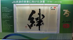 現在、創立75周年の節目を記念する取組みの一環として、75年の歩みを振り返る記念展示「共済プラーザ」と、記念モニュメント「絆の環(わ)」をJA共済ビル(東京都千代田区)2階エントランスホールにて公開しています。