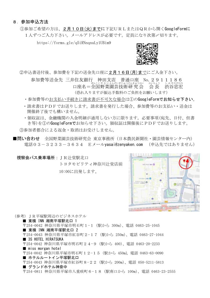 全国野菜園芸技術研究会(全野研)は、2月27日(金)に、神奈川県下のトマト、キュウリ ハウスとJA全農 営農・技術センター(平塚市)で、トマト・キュウリサミット9.5を開催する。